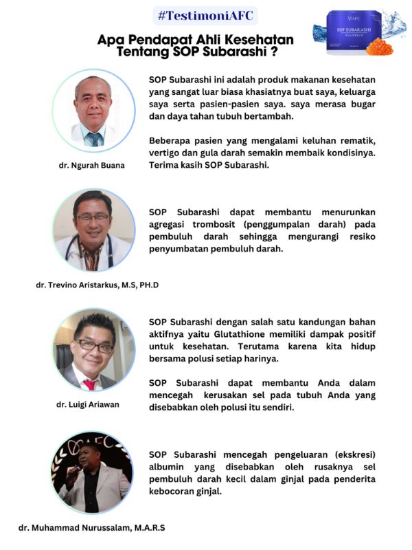 Kami adalah distributor resmi AFC Bekasi, menjual produk AFC yaitu SOP Subarashi Gold, Utsukushhii Gold dan Hikari yang asli.