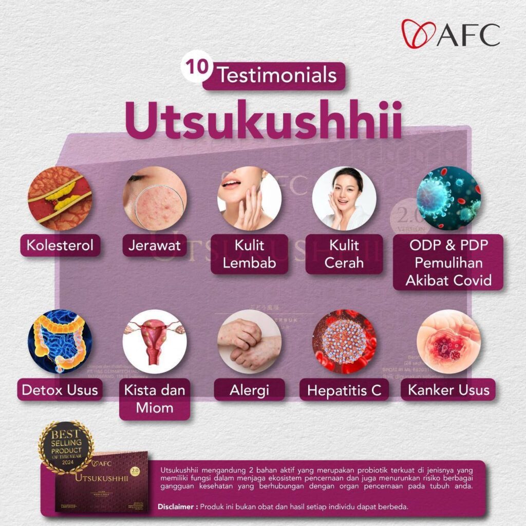 Utsukushhii Gold adalah superfood (makanan sehat) yang mengandung nutrisi tinggi yang sangat dibutuhkan oleh tubuh. Terbuat dari bahan-bahan alami. 8 Bahan utamanya antara lain : Salmon DNA, Takara Combu Fucoidan, Triple Probiotik, Bawang Hitam, Extrak Nanas, Ekstrak Kulit Anggur, Ektrak Biji Kiwi, Vitamin D dan lain lain. Utsukushhii Gold memiliki 8 paten manfaat seperti yang tertera di bawah ini :